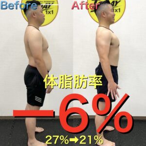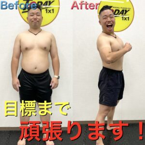 これまで食生活が乱れ気味だった為、しっかりとした食事アドバイスと、トレーニングの追い込み具合が最高とおしゃって頂いてます。