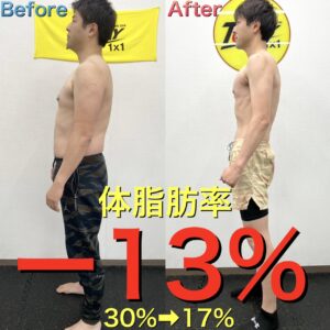 キックボクシングもされ、ダイエットを楽しみながら成功させておられます!有言実行の精神が素晴らしく、「リバウンドのない身体作り」の目標まで、まだまだ頑張られると本当に頼もしいお客様です!